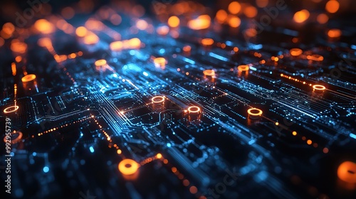 An abstract illustration of a circuit board or blockchain network, representing modern electronics and technology connections in high resolution.