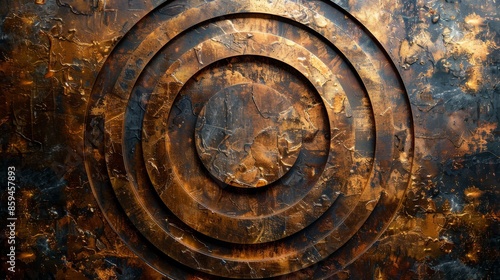 An abstract image featuring concentric metallic rings on a textured background, emphasizing a mesmerizing play of light and shadow with a modern artistic style.