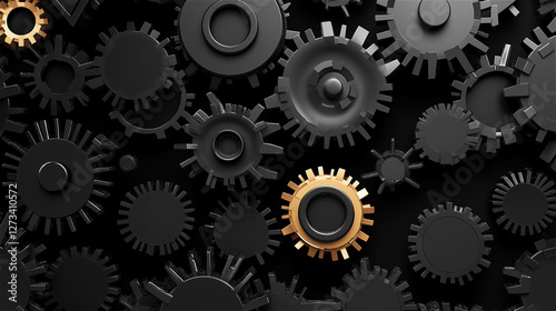 An abstract image of gears and mechanical elements in dark tones, with some golden highlights, representing the concept of technology, innovation, and engineering.