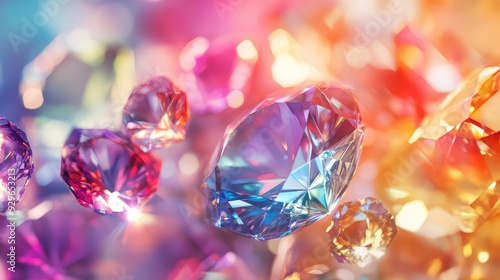 An abstract image of glimmering gems with light playing off their facets, creating a colorful and mesmerizing effect.
