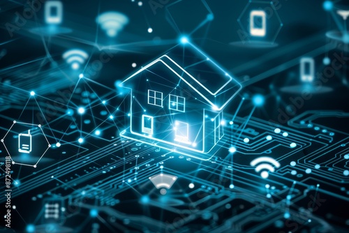 An abstract image of network connectivity in a smart home, highlighting the integration of IoT devices and seamless communication