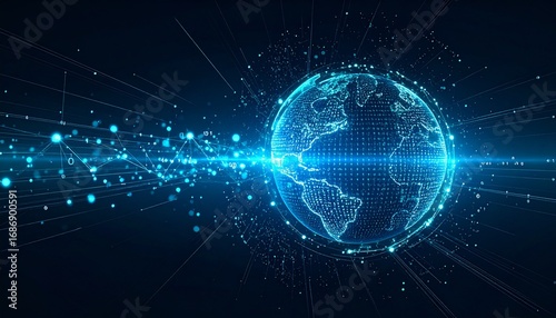 An abstract image of the digital globe that is full of complex web of connecting lines. It demonstrates a complex, data-driven world