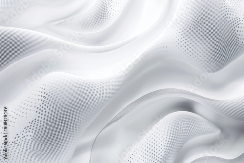 An abstract image of white waves with halftone patterns, creating a modern and minimalist visual effect with soft curves.
