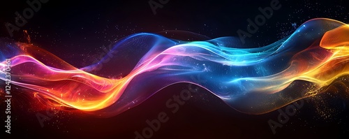 An abstract, liquid glass effect with neon iridescent waves in motion, set against a dark background. This dynamic and modern design is perfect for creative and futuristic themes