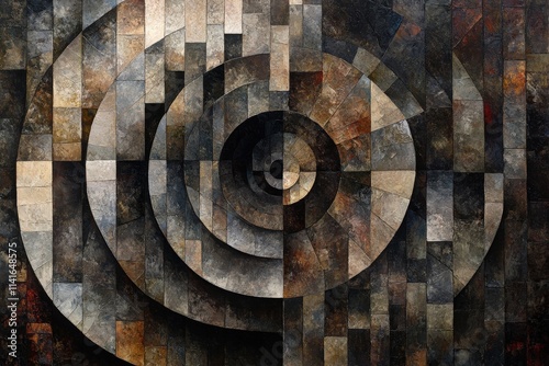 An abstract pattern featuring concentric circles in earthy tones, creating depth and texture with a contemporary artistic flair.