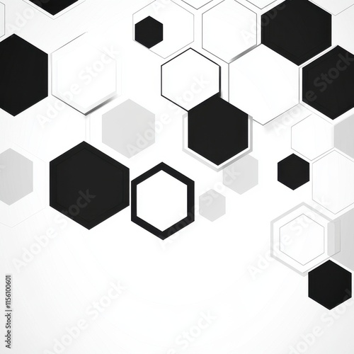 An abstract pattern of black and white hexagons creates a modern, stylish design.