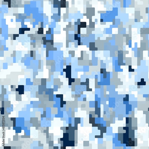 an abstract pixel artwork in the styles of camouflage, retro-futuristic, simple, minimalist, blue, white, grey, black