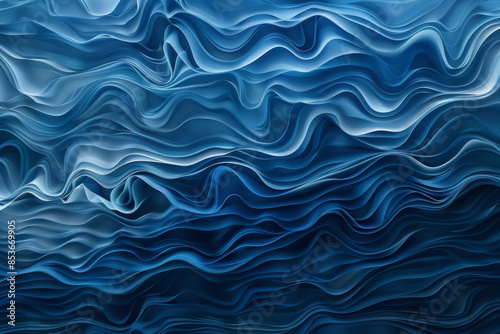 An abstract presentation of undulating blue layers, reminiscent of waves or flowing fabric, evoking a sense of depth and motion.