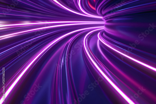 An abstract purple background features curved lines and glowing neon light effects, creating an atmosphere of motion and speed.