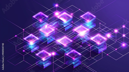 An abstract representation of a blockchain network featuring glowing nodes and interconnected lines, illustrating digital technology and data exchange.