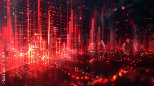 An abstract representation of a stock market crash with red descending lines and data points against a dark background The image should convey the dramatic impact of market downtur