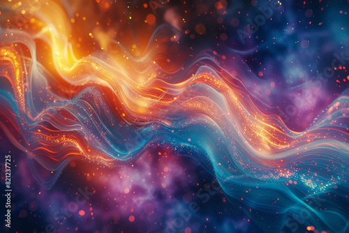 An abstract representation of the primordial chaos, with vibrant colors and swirling patterns hinting at the birth of the universe,