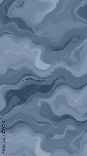 An abstract seamless pattern using a blend of muted blues and grays, created with a digital painting technique, featuring flowing, organic shapes and a horizontal layout.