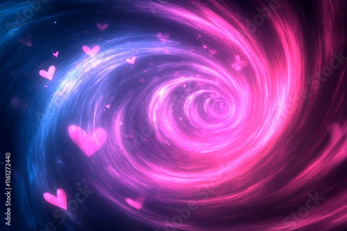 An abstract Valentine's Day background filled with swirling hearts in vibrant reds and pinks, evoking love and romance in a dreamy design.