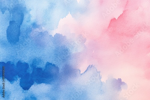 An abstract watercolor background featuring soft blue and pink hues, perfect for artistic projects and design work.