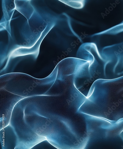 An abstract wave background with fluid dynamic motion, glowing blue lines flowing across a dark futuristic backdrop