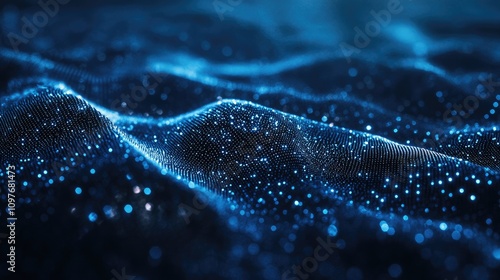 An abstract wave of shimmering blue digital particles creating a deep oceanic illusion.