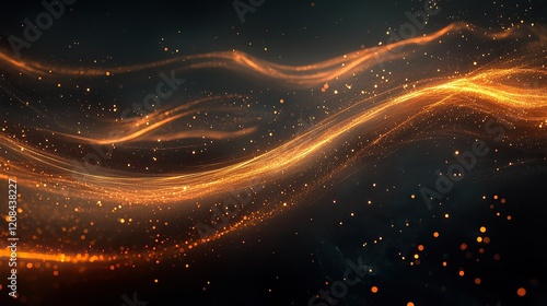 An abstract wind-like flow of bioluminescent organic material forming smooth arcs and glowing particles in a deep ambient field