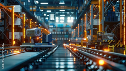 An advanced AI system overseeing a complex logistics network in a high-tech warehouse.