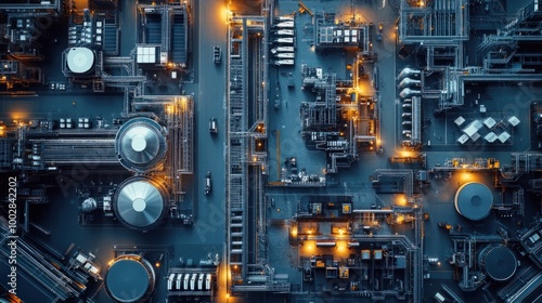 An aerial shot of a satellite factory where engineers assemble components, highlighting the intricate design process