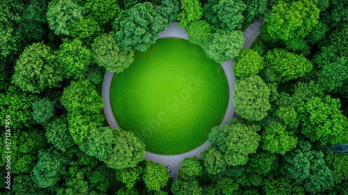 An aerial view of a city park, its green expanse a stark contrast to the surrounding concrete jungle, offering a haven of tranquility amidst the urban chaos.