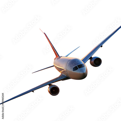 An airplane flying in the sky with its wings spread out against a bright white background in the daytime on transparent background