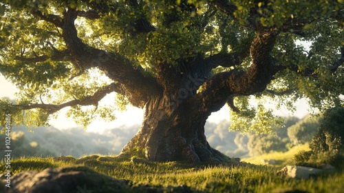 An Ancient Tree Stands Tall in a Sunlit Forest Clearing