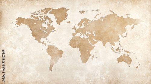 An antique world map illustration featuring a vintage style on a textured background, perfect for educational and decorative use.