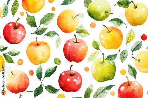 An apple tree branch illustration is presented in watercolor, highlighting a fresh apple with a leaf, all set against a clean white background