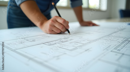 an architect drawing building blueprints