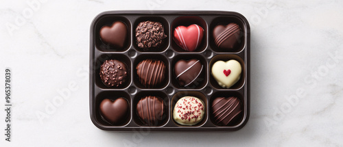An array of assorted chocolates in a heart-shaped box, perfect for gifts, celebrations, or indulging in sweet moments.