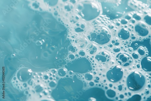 An array of bubbles, intricately arranged, floating in a soft blue pool evokes a sense of tranquility and playful curiosity.