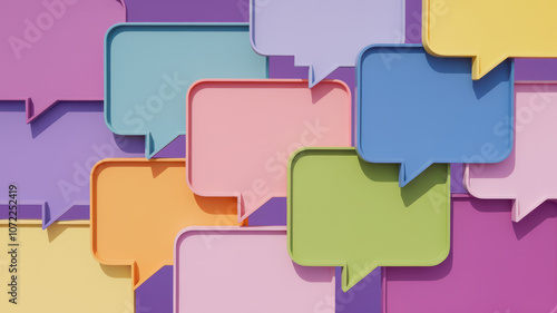 An array of colorful speech bubble shapes against a vibrant backdrop, symbolizing communication and dialogue.