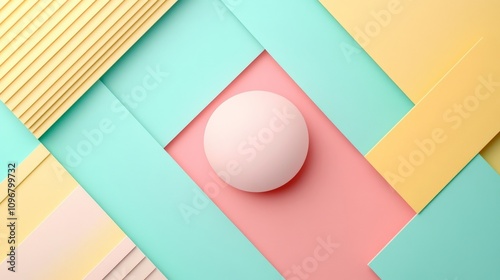 An artistic arrangement of colorful paper layers featuring a central white sphere. This vibrant composition invites creativity and visual intrigue.