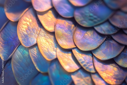 An artistic close-up of scales with iridescent golden hues reflecting light beautifully. The pattern appears mesmerizing, capturing the essence of exotic allure.