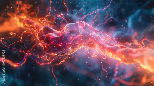 An artistic depiction of brain cells, using bright colors and abstract patterns