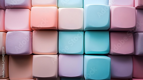 An artistic display of pastel-colored cubes arranged symmetrically, highlighting a blend of creativity and geometric harmony with rich textures.