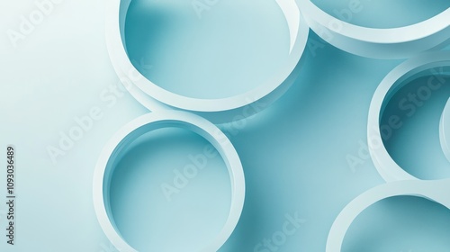 An artistic geometric layout of arcs and circular stripes scattered asymmetrically across a pale blue background.