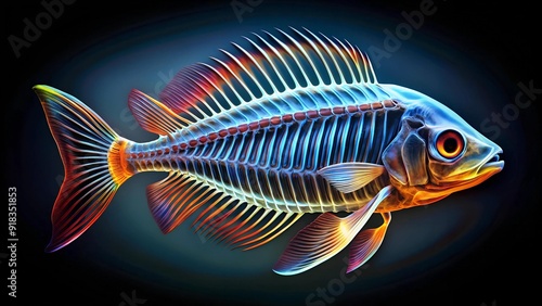 An Artistic Interpretation of a Fish's Skeletal Structure Through an X-Ray Lens Generative AI
