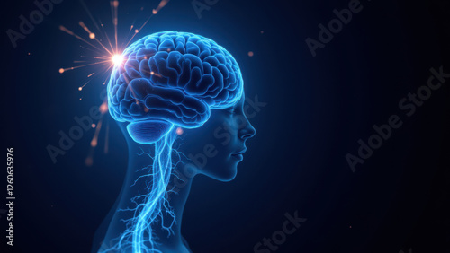 An artistic rendering of a human head with highlighted VNS, showing how vagus nerve stimulation could work.