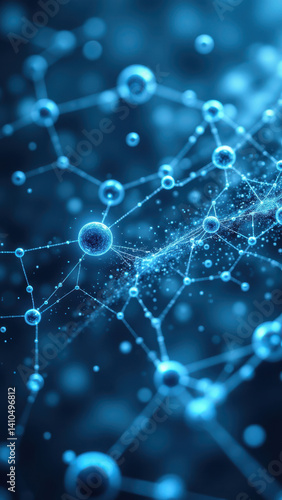 An artistic representation of a GLP1 molecule with its structure highlighted by blue spheres and glowing elements, against a dark background.