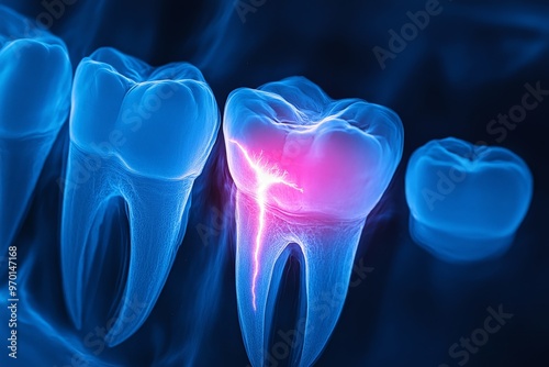 An artistic visual of a tooth with a highlighted red area symbolizing a dental issue, emphasizing the importance of dental health and preventive care against tooth decay.