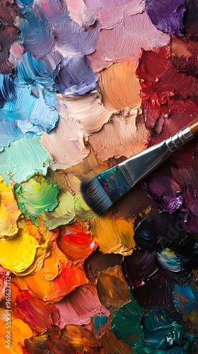 An artist's palette filled with vibrant paint textures, emphasizing the creative process