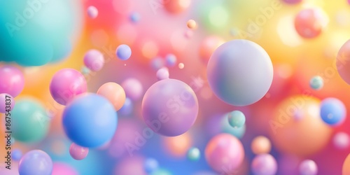An artwork features vibrant 3D spheres on a blurred pastel gradient, creating a modern dreamy aesthetic