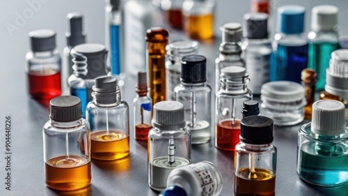 An assorted collection of colorful glass vials and bottles filled with various liquids, creating a vibrant and intriguing visual display.