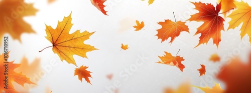 An autumn frame with colorful leaves and raindrops on a transparent background.