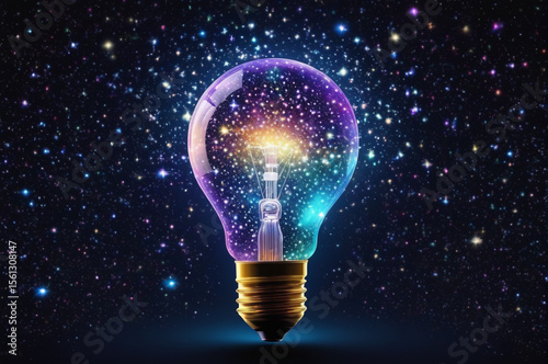 An electric light bulb with a cosmic consciousness inside. Generative AI.