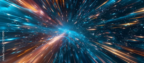 An electrifyingly blue circle in space resembling a wormhole, emanating abundant light. A captivating fusion of science, art, and symmetry.