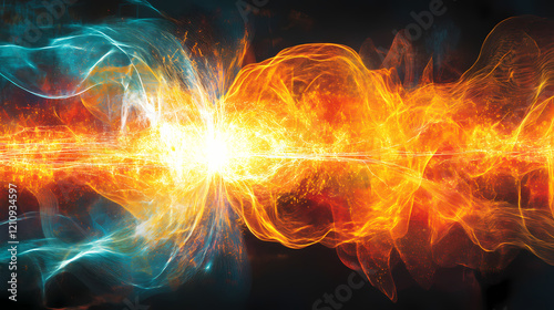 An electromagnetism explosion showcasing electric and magnetic field lines and sparks, banner, with copy space. Electric Fields. Illustration