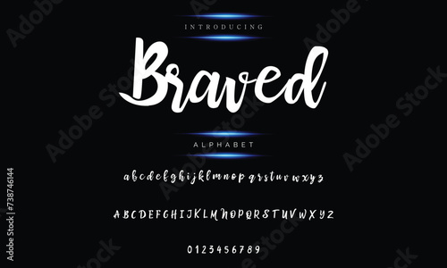 An elegant brush was used to paint an alphabet, typeface, and capital letters in uppercase.